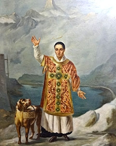 8. Em Montjoux, no território de Valais, São Bernardo de Menthon, presbítero, que foi cónego e arcediago de Aosta, mas durante muitos anos habitou nos cimos dos Alpes, onde construiu um memorável cenóbio e edificou também hospedarias para os peregrinos em dois montes que ainda hoje são conhecidos pelo seu nome.